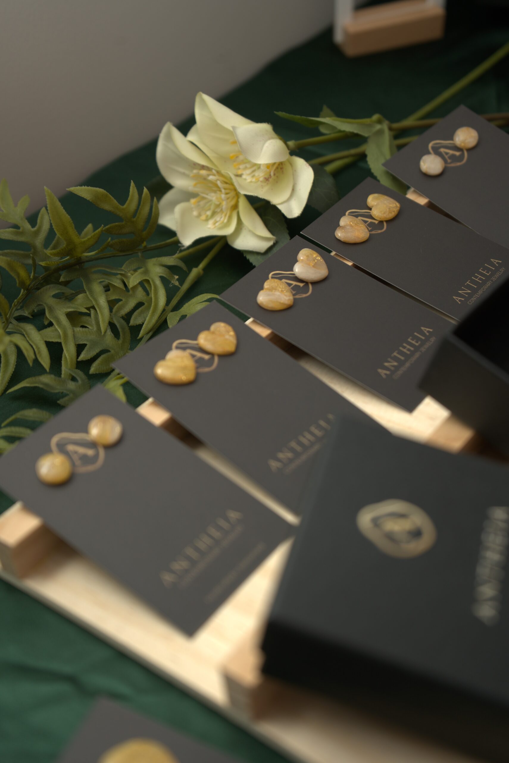 Add a touch of love to your style with the “Golden Sunbeam” Heart Earrings. These handcrafted hearts capture the light beautifully, radiating a warm, golden energy.