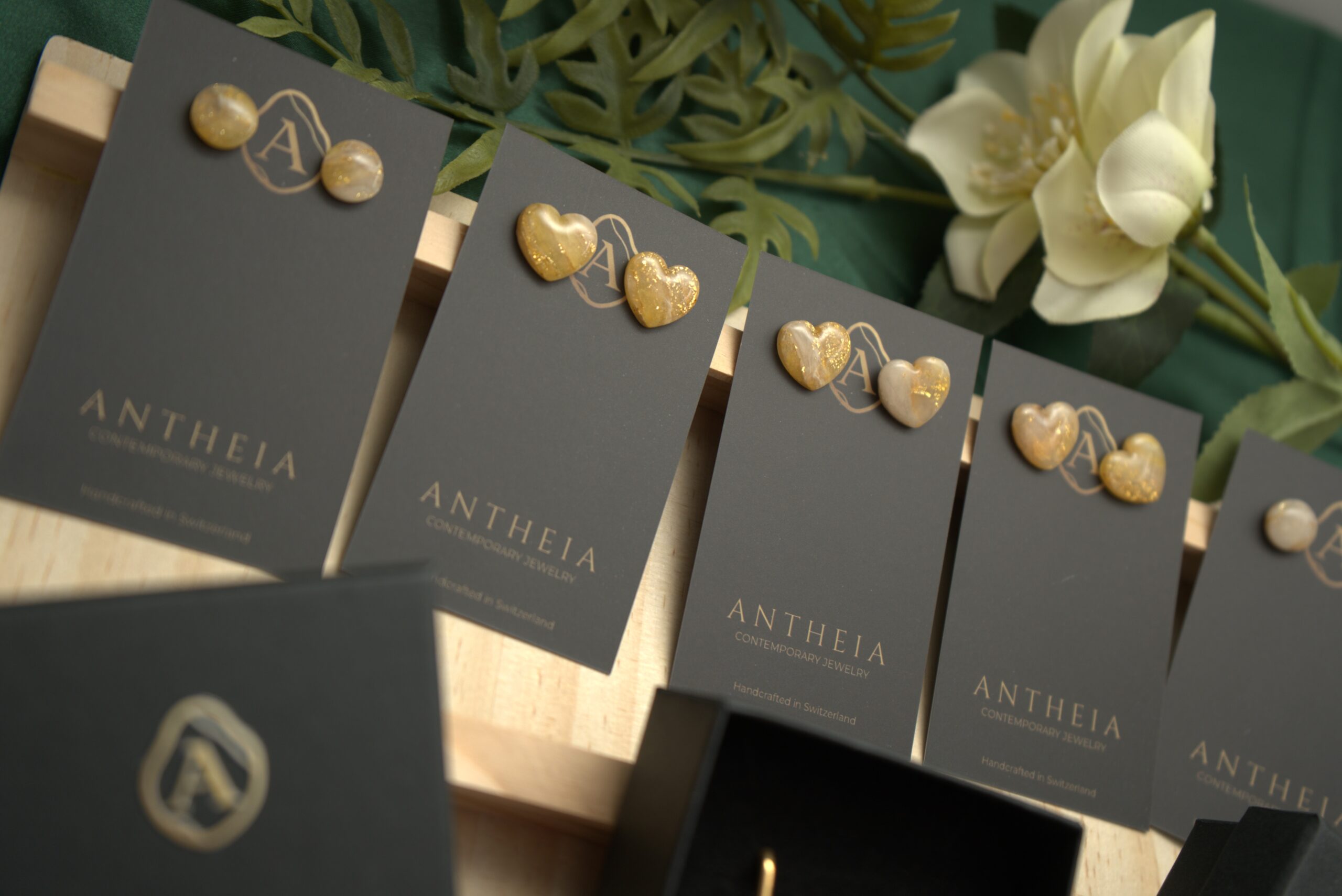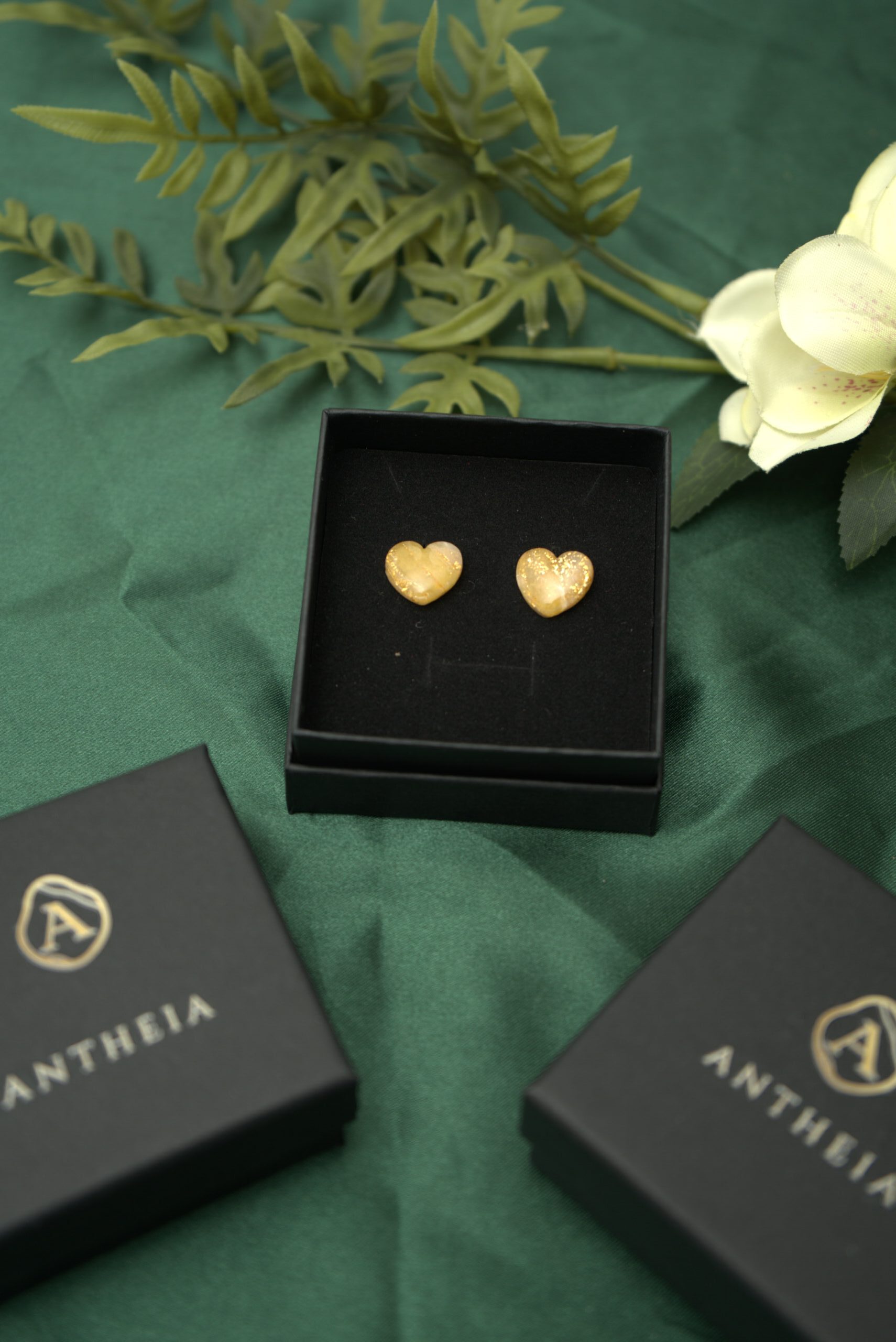 Handcrafted heart-shaped earrings from the “Golden Sunbeam” collection. A timeless symbol reimagined with honey-toned polymer clay, gold leaf, and a crystalline resin finish. Material: High-quality Stainless Steel (hypoallergenic). Finish: Elegant high-gloss glow. Proudly handmade in Switzerland. ✨